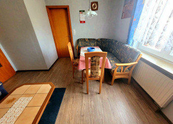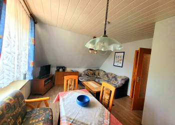 Unsere Ferienwohnung mit 55 qm hat einen nach Westen gelegenen möblierten Balkon und liegt im ersten Obergeschoss. Sie können diese für max. 3 Personen buchen.